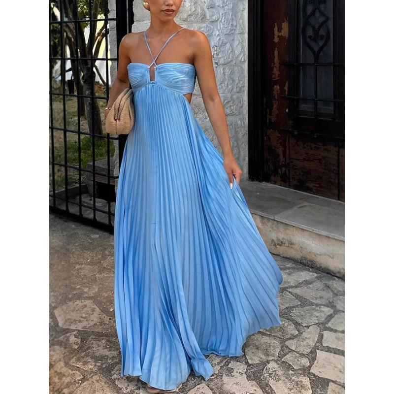 Women's Clothing Sweet and Sexy Suspender Tube Top Pleated Pendulum Dress Solid Color Women
