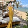 Niche Neck Lace Dress, Waist Shows Long Figure, Celebrity Sexy Dress, Fishtail Dress