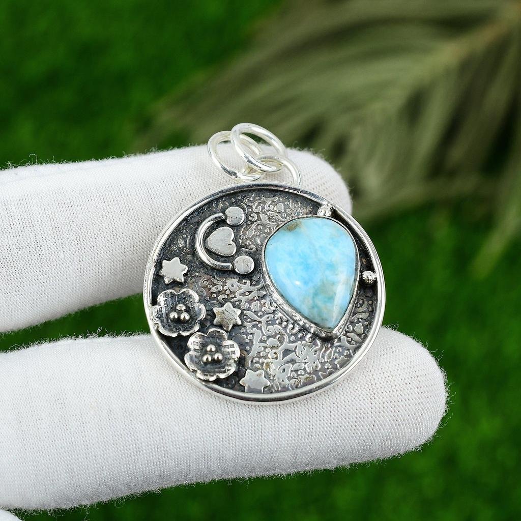 Natural Larimar Gemstone Pendant 925 Sterling Silver Indian Jewelry For Women