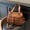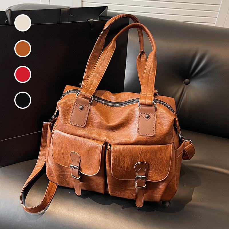 Vintage tote bag women's large-capacity multi-pocket shoulder bag women's commuting soft leather oblique straddle handheld women's bag