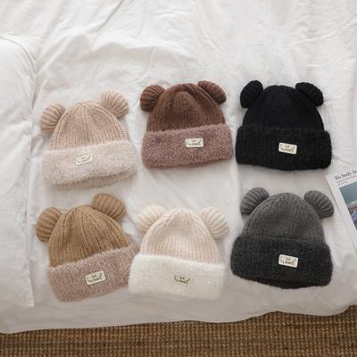 Yeni kışlık kazak şapka Kore tarzı sevimli ayı kalınlaştırılmış örgü şapka kadınlar için peluş sıcak örgü şapka küçük yüzü göstermek için