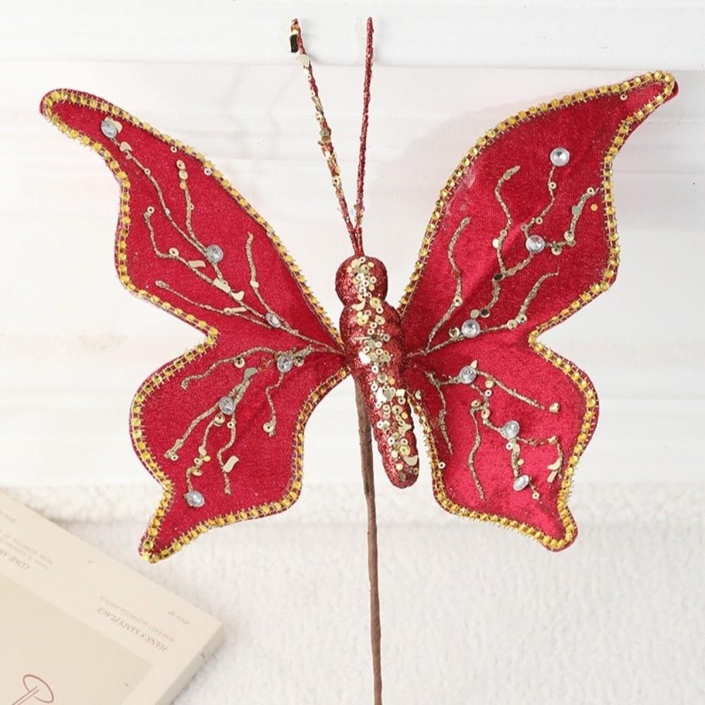 Glitter Butterfly Christmas Flower Sequins Simulated Artificial Butterfly Clip Flocking Exquisite Butterfly Pendants Home Party