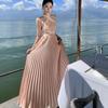 French High-end Collar Neck Halter Dress for Women's Summer New Waist and Thin Temperament Elegant Long Skirt