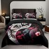 Dragon And Cherry Blossom Duvet Cover Set - Soft High-Definition Digital Print, Black with Pink Blossoms, Soft Breathable