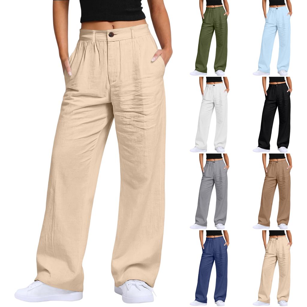 Ladies' Color Casual Fashion Breathable Loose Cotton And Linen Pants