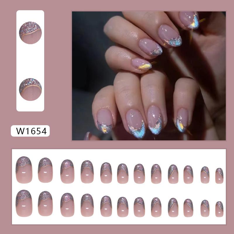 Cat's eye simple fake nail wearing nail French flash removable piece fine flash nail patch
