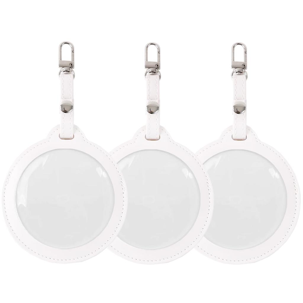 Set of 3 PU Leather Tin Badge Covers, Keychain Style, Transparent Protective Covers, High Transparency, Prevents Scratches, Collectibles, Display,