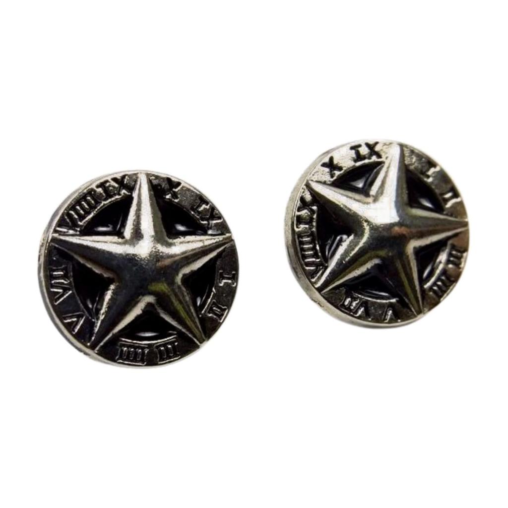 [F NODE] Silver Star-Shaped Pin Badge with Roman Numerals, Set of 2, 1.2cm, Alloy