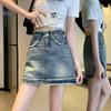 Klasik Çok Yönlü Genç Yarı Etek İnce Yüksek Belli Ham Kenar Tasarım Anlayışı Kalça Saran A-kesim Retro Bayan Yaz Modası Denim Mini Etek