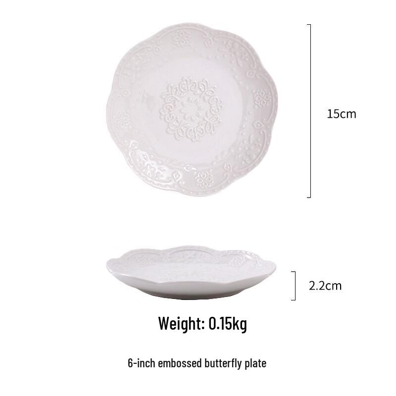 European Style Embossed Butterfly Ceramic Dinner Plate