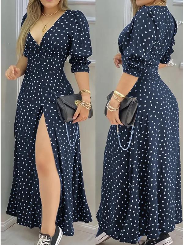 This elegant backless long sleeve dress is crafted from high-quality polyester, ensuring both comfort and durability. Designed with a classic polka dot pattern, it features a sophisticated mermaid silhouette that beautifully accentuates the figure. Perfect for a chic night out or a stylish event, this dress combines European elegance and American flair for a timeless look.
