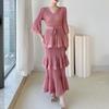 Experience elegance and sophistication with this high-end V-neck tie-up layered midi dress. Crafted entirely from premium polyester, this dress offers both comfort and style. The layered design adds a touch of modern flair, while the tie-up detail at the waist allows you to customize your fit for a flattering silhouette. Ideal for special occasions or elevating your everyday wardrobe, this dress combines contemporary design with timeless appeal.