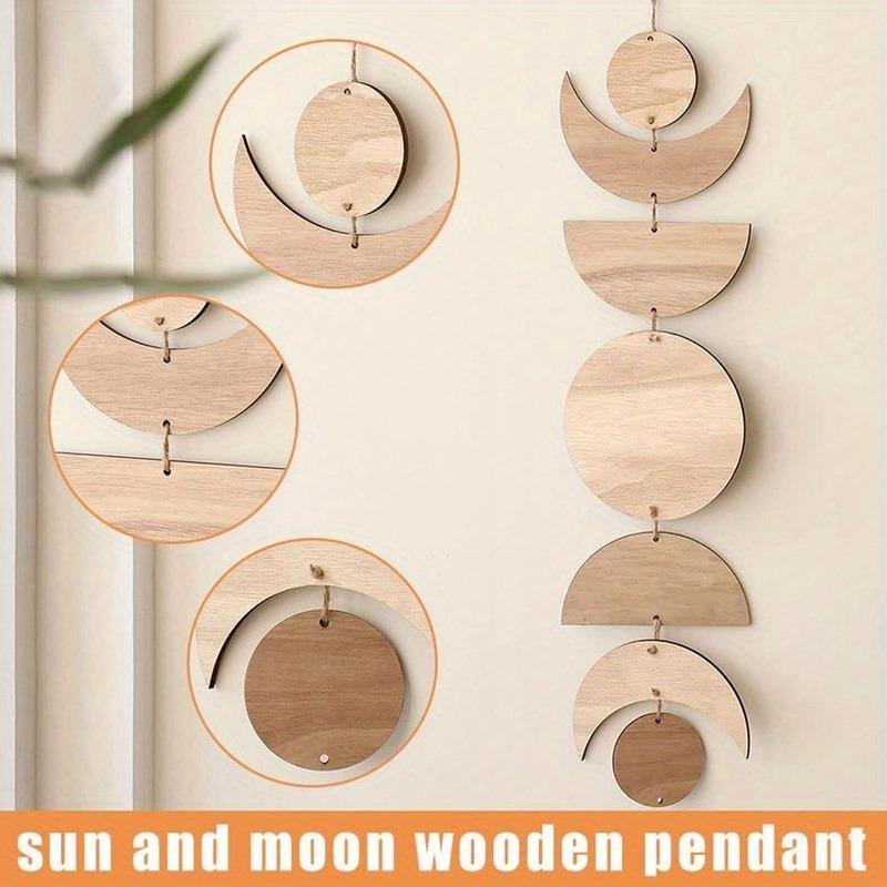 1PC Vintage Sun and Moon Wooden Pendants for Home Decoration Raw Wood Chips Handicrafts