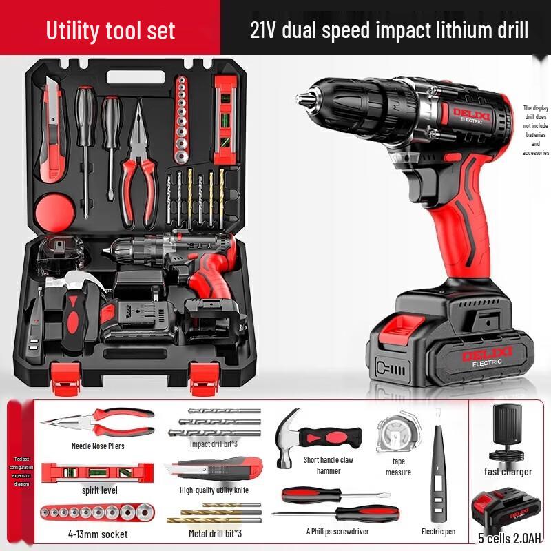 DELIXI 24V Cordless Lithium-ion Drill & 24-Piece Tool Set CN plug (adapter included)