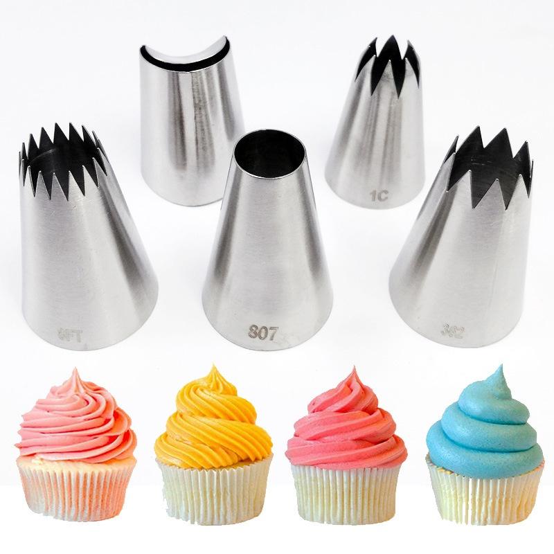 5pcs Large Metal Cake Cream Decoration Tips Set Pastry Tools Stainless Steel Piping Icing Nozzle Cupcake Head Dessert Decorators.