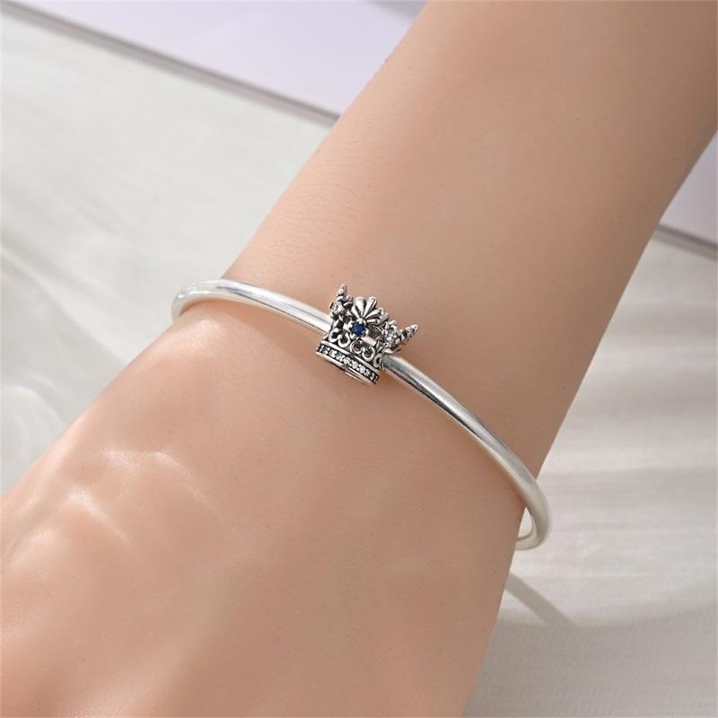 Classic 925 Silver King Of The Forest Beads & Shiny Rose Gold Crown Dangle Charm Fit Bracelet Beautiful Jewelry Gifts