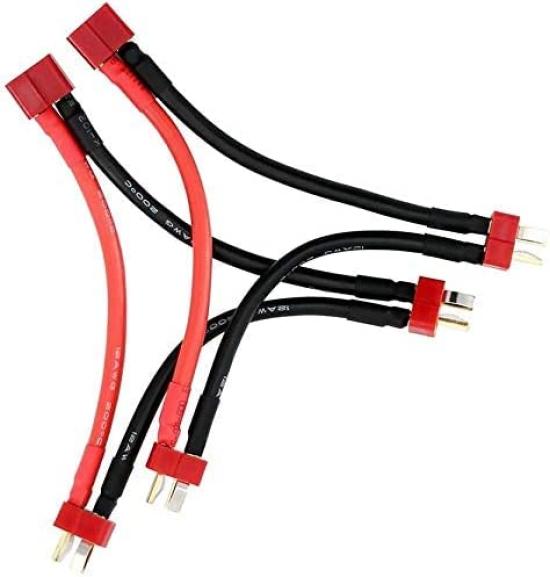 2pcs Deans T Serial Series Connector 1 Female to 2 Male T Plug-in Series Power Connector Adapter with 12cm Wire for RC Quadcopter Multirotor