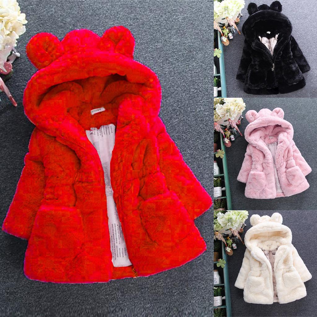 Çocuk Giyim Sonbahar Kış Yeni Kız Çocuk Taklit Kürk Pamuk Dolgulu Ceket Kulaklı Kalınlaştırılmış Ceket Kış Modası Sıcak Kaban