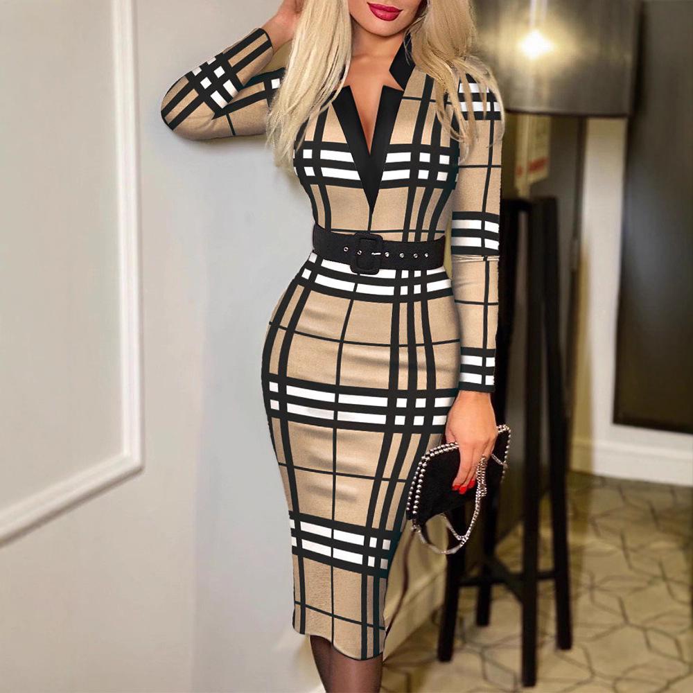 Elevate your seasonal wardrobe with this elegant V-neck long sleeve dress, designed to captivate with its chic and sexy print. Crafted from soft, stretch polyester, it offers a flattering fit that enhances your silhouette while ensuring comfort. Perfect for autumn and winter occasions, this dress combines style and sophistication, making it a versatile choice for any event.