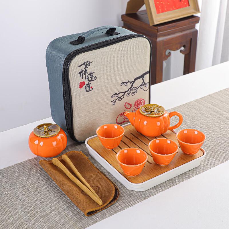 OIMG Ceramic Persimmon Ruyi Travel Kung Fu Tea Set