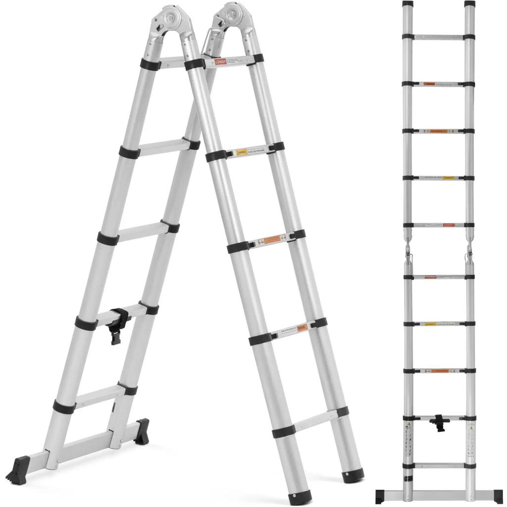 Telescopic aluminum folding ladder 12 steps 08518538 m