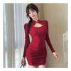 Spring Elegant Long Sleeve Button-Up Cheongsam-Inspired Dress - Pleated, Waist-Cinched, Hip-Hugging Short Skirt for Women