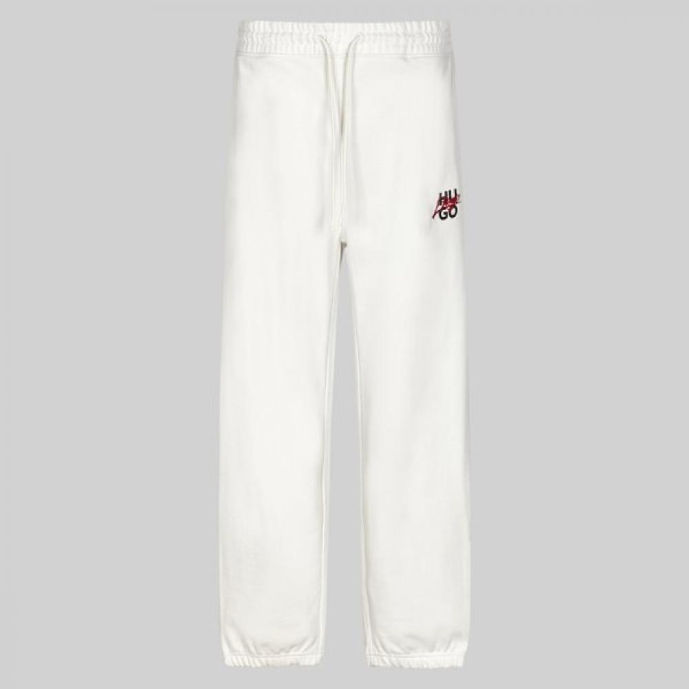 The HUGO Relaxed Fit Double Logo Terry Tracksuit Pants are designed in a relaxed fit using soft French terry fabric. This product features HUGO's double logo print, emphasizing its signature style while providing a comfortable fit.