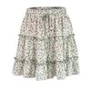 Summer Women's Casual High Waist Ruffled Floral Skirt Beach A-line Skirt