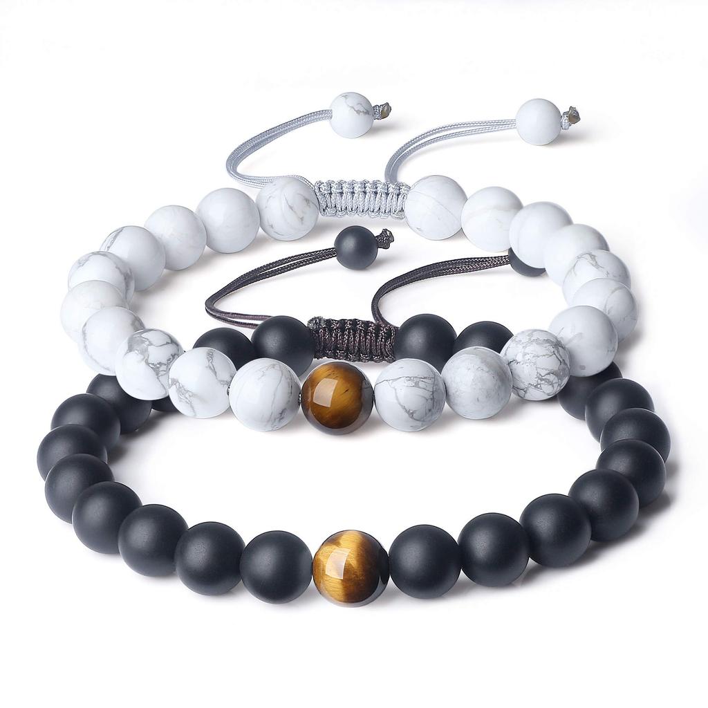 Sizes: Women's: 8mm howlite, 8mm tiger eye, wrist size 14-17cm (inner circumference 15cm, length adjustable); Men's: 8mm matte onyx, 8mm tiger eye, wrist size 16-19cm (inner circumference 16.5cm, length adjustable).