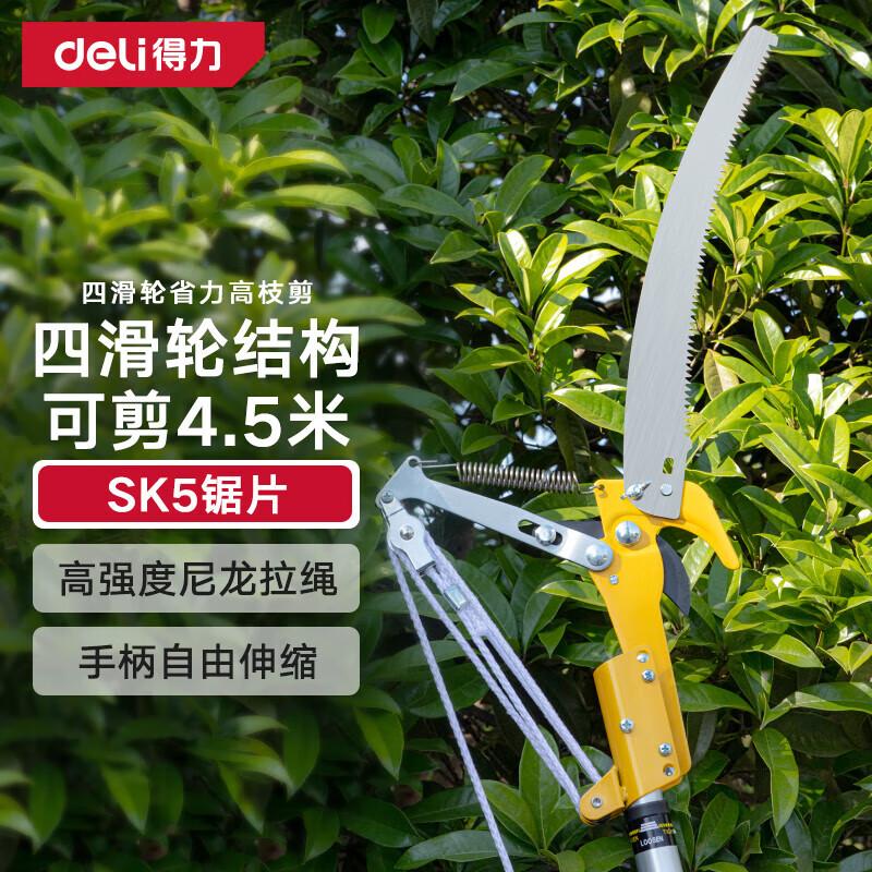 The Deli Extendable High Branch Shear is a labor-saving gardening tool designed for efficient pruning. Featuring a four-pulley system, it allows for easy cutting of high branches, making garden maintenance simpler and more effective.