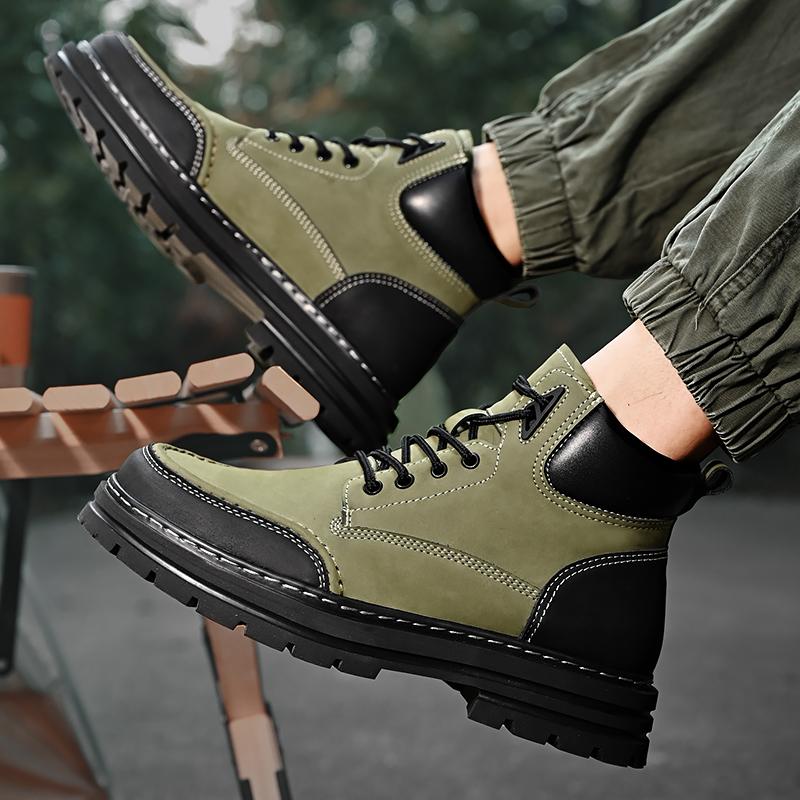 Men Boots ThickSole Luxury Fashion High Quality Thick Soled Anti Slip Genuine Leather Brand British Style Hiking Men's