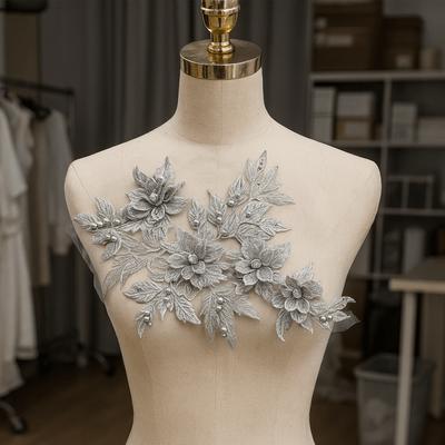 Elbise Dans Giysileri Kumaş Etiketler Boncuklu Örgü Kumaş İşlemeli Üç Boyutlu Çiçek Yapay Elmas Dantel Düğün Dekorasyonu Yama Aksesuarları
