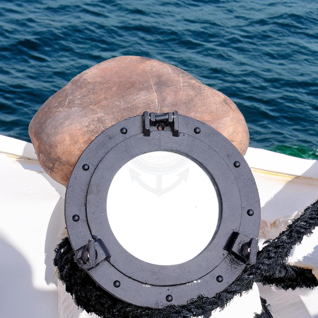 A Porthole, Sometimes Called Bull's-Eye, Is A Generally Circular Porthole Frame Used On The Hull Of Ships To Stream & Admit Light And Air. Though The Term Is Of Maritime Origin, It Is Also Used To Describe Round Portholes On Armored Vehicles, Aircraft, Automobiles And Even Spacecraft. On A Ship, The Function Of A Porthole, When Open, Is To Permit Light And Fresh Air To Enter The Dark And Often Damp Below-Deck Quarters Of The Vessel. It Also Used To Affords Below-Deck Occupants A Limited, But Often Much Needed View To The Outside World. Enlighten Your Wall And Bathrooms With Our Wonderful Finishing Portholes, With The Appealing Finish That Provides A Good With Enough Reason To Have One. Cast & Moulded Out Of Solid Grade Metal, Nautical Portholes Are Truly An Amazing Addition If You Are A Pirate's Admirer. Not Only For Aficionados. Nautical Porthole Could Be Used At Various Places, From Your Beaches Houses To Offices, Bathrooms To Basins. Our Porthole Have Functional Hinges And Clamps Which Are Fully Working. The Clamps Can Be Unscrewed So That The Porthole Can Be Swung Open If Required. An Ageless Solid Grade Metal Porthole Frame That Will Survive Ages When Treated Accordingly. The Finish On The Porthole Is Sealed And Won't Fade Or Go Away Over The Years Of Exposure. All Portholes Sold By Us Are Actually Openable Portholes With Actual Hinge And Wing Nuts That Keep The Movement Locking. The Wings Are Threaded On The Metal Studs And Winds Down Easily To For Allowing Access Inside And Then For Closure Later. Place This Item In Your Lake House, Bar, Or Any Other Nautical Themed Room You Can Imagine. This Mediterranean-Style Wall Mounting Decor Ornament Is Perfect Choice For Living Room, Home Or Shop, Office, Pirate Themes Room, Seaside Gardens, Patio, Tiki-Bar, Floating Tiki, Nature Adventurous Wild Camps, Vans etc. Possibilities Are Endless & Limitless. Keep Exploring Nagina International For More Such Impressive Wall Decors.