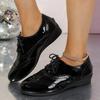 Spring and Autumn New Large Size Leather Shoes Women's Carved Lace-up Casual Single Shoes