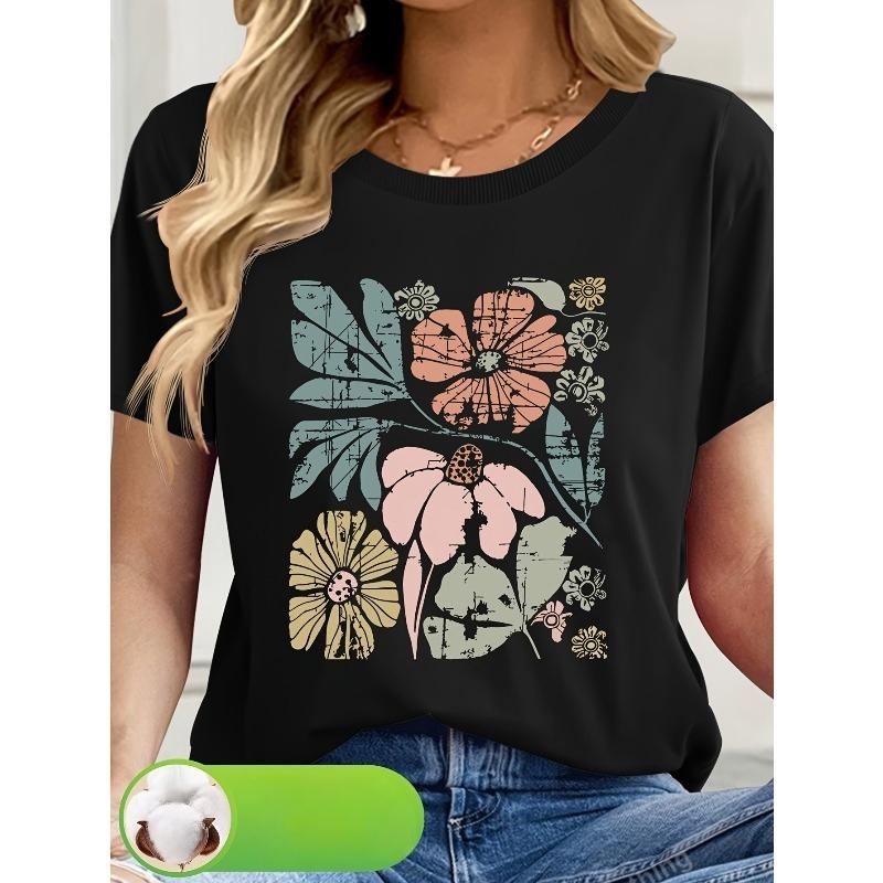 Womens Casual Tee 100% Pattern Print Round Neck Short Sleeve Summer New Arrival Top