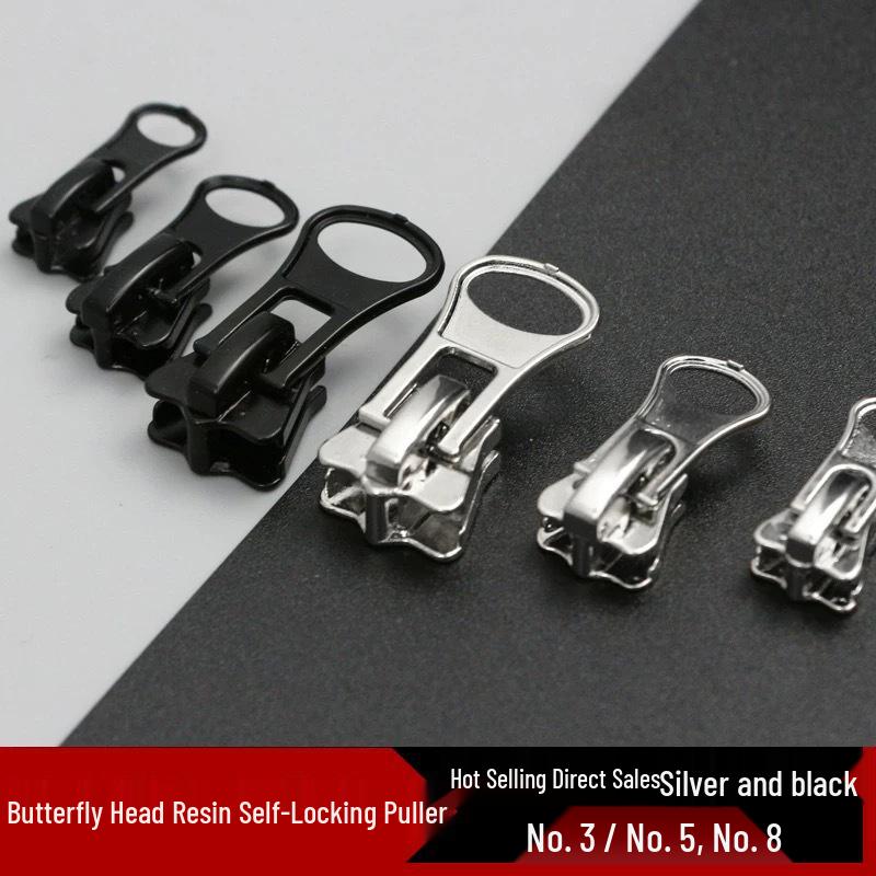 Resin Zipper with Disc Bottom Puller, Size 3/5/8, Self-Locking Zinc Alloy, Thickened Puller In Stock