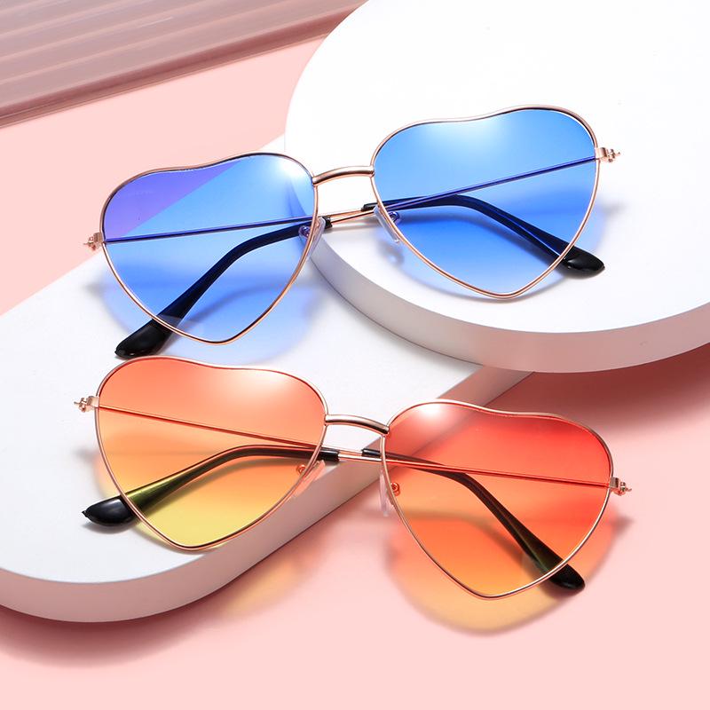 Metal Heart Sunglasses with Ocean Lenses - Fashionable Heart-shaped Street Style in Candy Colors