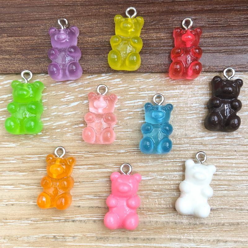 Cute Colorful Cartoon Bear Pendant Charm - Resin DIY Jewelry Accessory