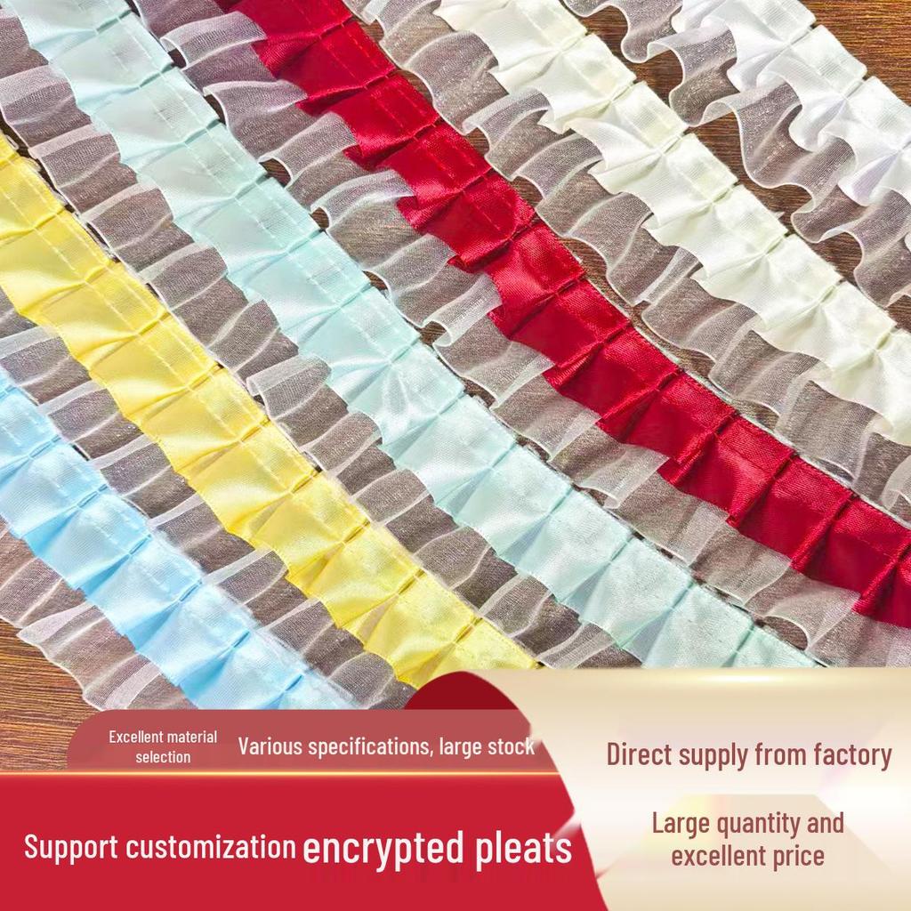 Bu zarif ve çok yönlü kurdele, 4 cm genişliğinde ve çift katlı şifon yapısıyla, her projeye zarafet katmak için mükemmeldir.. Malzeme karışımı hem plastiği hem de polyesteri içererek dayanıklılık ve benzersiz bir doku sağlar.. Kurdele, pileli dantel süslemeyle güzelce süslenerek, narin bir prenses esintili estetiği yansıtan büyüleyici fırfırlı bir kenar oluşturur.. Çeşitli kendin yap el işleri için ideal olan bu kurdele, giysileri, aksesuarları veya ev dekorasyonu projelerini zarif bir dokunuşla süslemek için mükemmeldir.