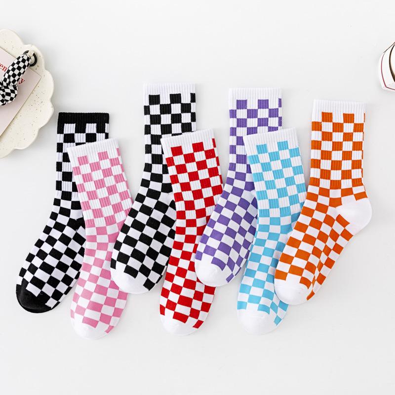 Trendy Plaid Mid-Calf Socks for Men & Women: Fashionable College Style Sporty Couples' Socks