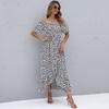 Summer retro sweet wind short-sleeved floral dress irregular off-the-shoulder dress