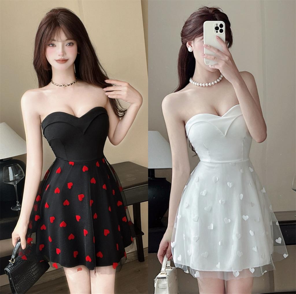 Women's work clothes sexy low-cut tube top with chest pad A-shaped princess short skirt