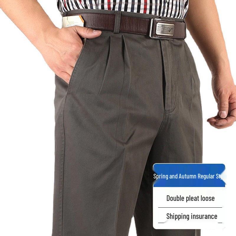 Introducing high waist, double pleated cotton pants designed for exceptional comfort and style throughout the spring and autumn seasons. Constructed from premium cotton, these loose fit trousers provide breathability and flexibility, making them an ideal choice for daily wear or casual outings. Embrace a classic, relaxed look with these versatile pants that effortlessly blend functionality and timeless fashion.