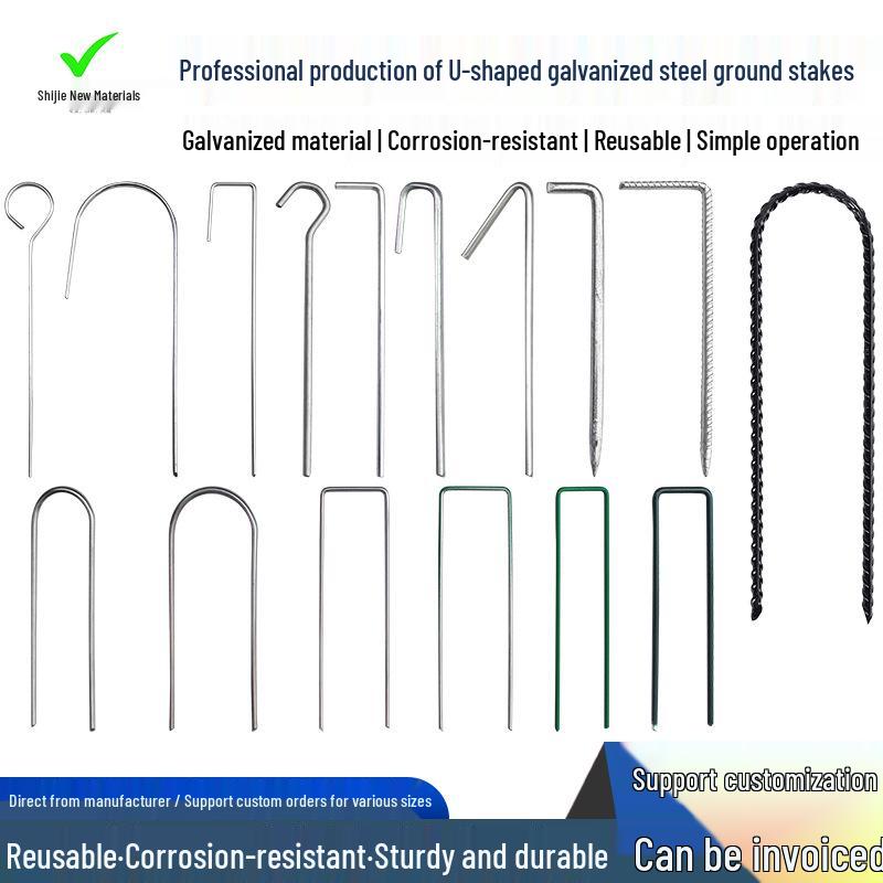 Customized Galvanized U-Shaped Ground Stakes with Washers for Weed Barrier and Landscape Fixing
