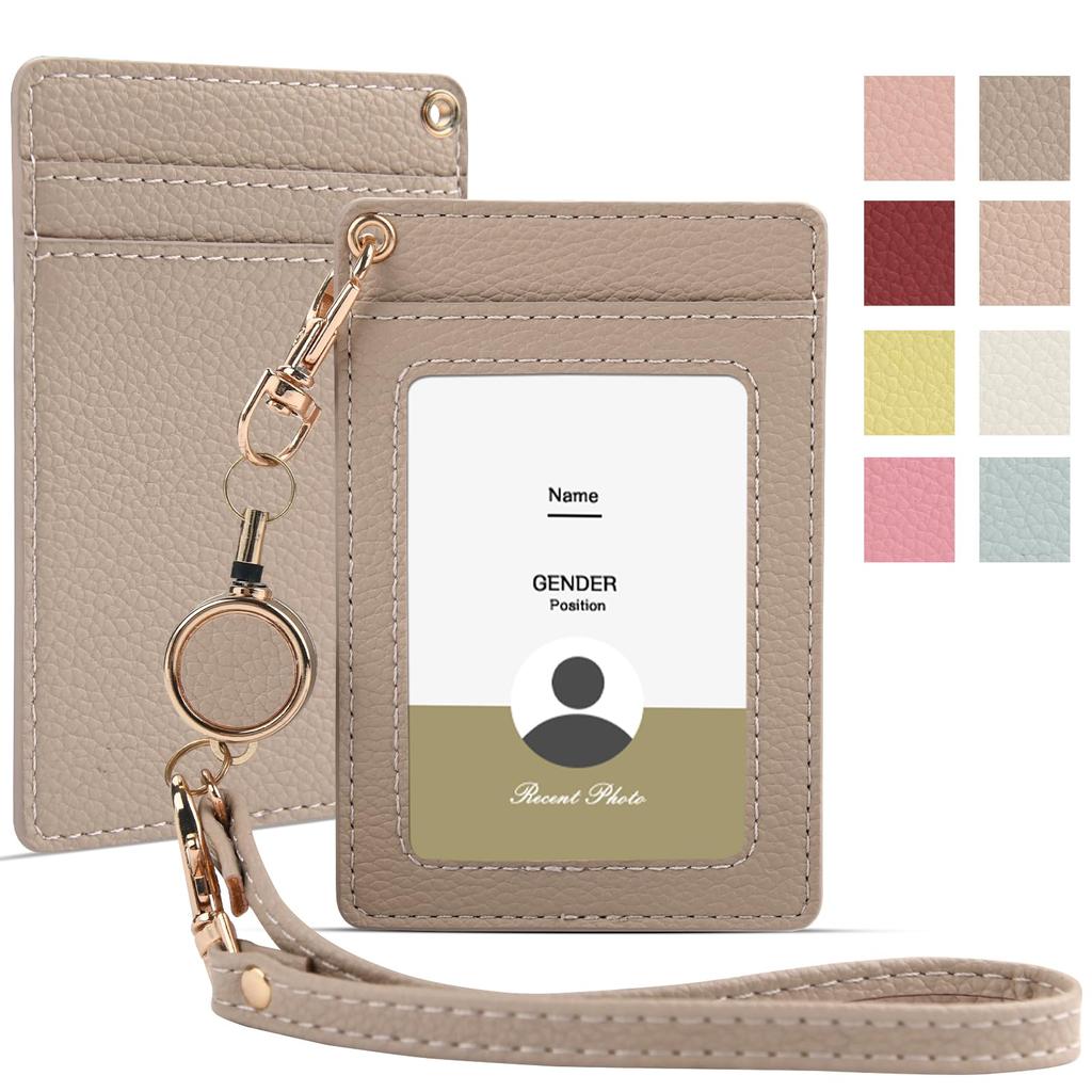 Dockii ID Card Holder, Vertical, Employee ID Card Case, Women's, Hand Strap, Double-Sided, Extendable Reel, Name Holder, Pass Case, Business Card