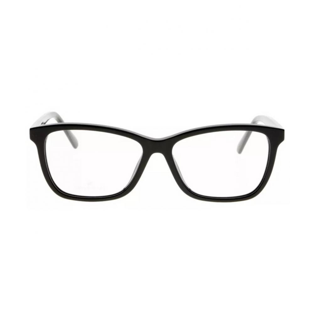 The Swarovski Eyeglasses shiny black SK5265 features elegant frames and high-quality lenses. It offers 100% UVA/UVB protection and is designed for a comfortable fit. One temple features the signature Swarovski logo, emphasizing brand identity. Dimension specifications include lens 54 mm, bridge 14 mm, and temple 140 mm. This product is made in Italy.