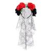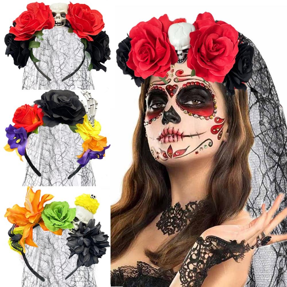 Halloween Black Veil Floral Hair Band Day Of The Dead Skull Rose Flower Headband Crown Cosplay Costume Headpiece Party Headwear