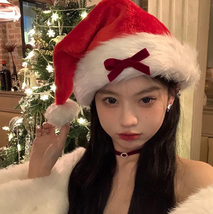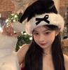 Fashion Red Sweet Cherry Bow Plush Santa Hat Women Warm Windproof Ear Protection Festive Party Supplies New Year Christmas Gifts