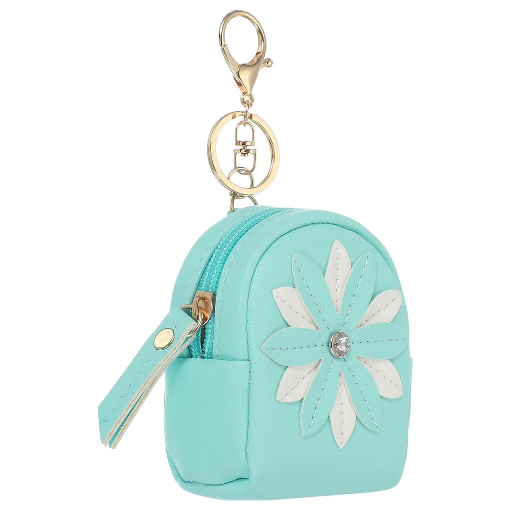 PATIKIL Women's Mini Backpack Keychain, Creative and Cute Flower Rhinestone Pendant Bag PU Leather Key Ring, Makeup Key Card Data Cable Organizer
