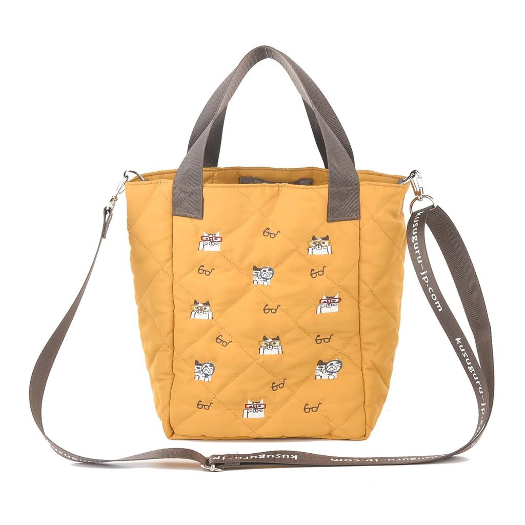 [Kusuguru Japan] Water-Repellent Quilted Polyester Tote Bag, 2-Way, Women's, Mustard